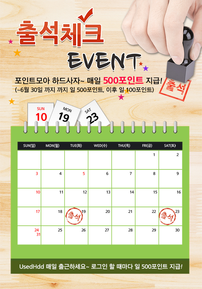 출석체크 이벤트 - 포인트모아 하드사자!